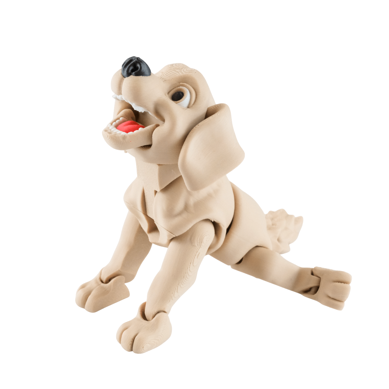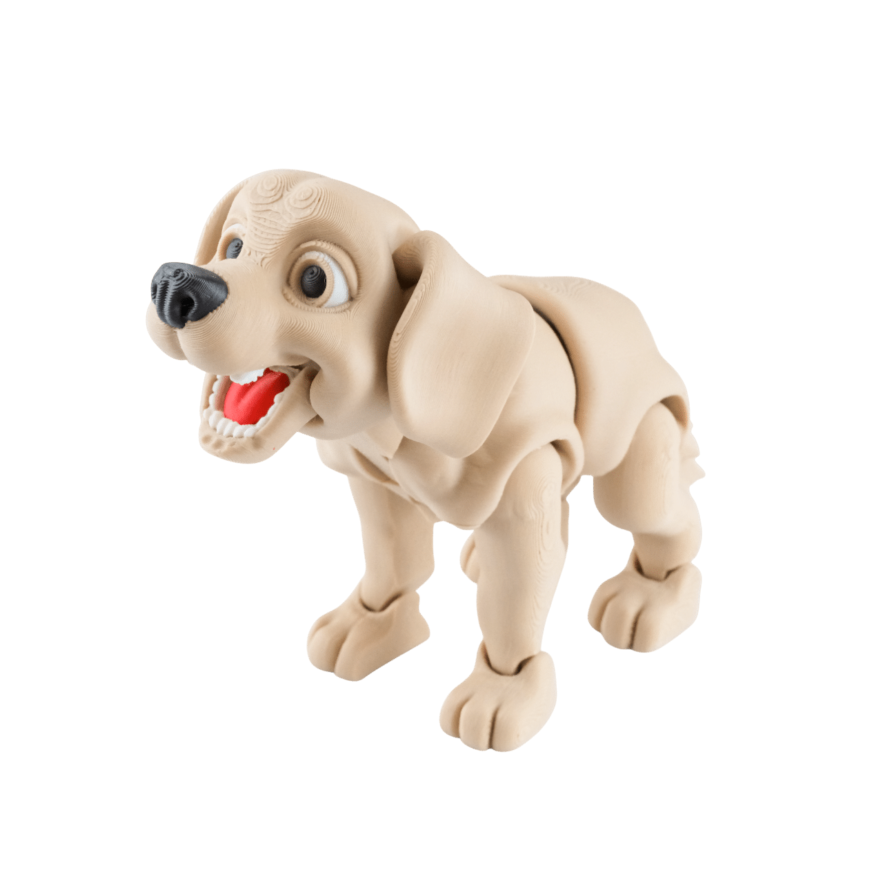 Blablador figurka labradora z druku 3D beżowa, otwarty pysk z językiem, czarny nos, ruchome kończyny