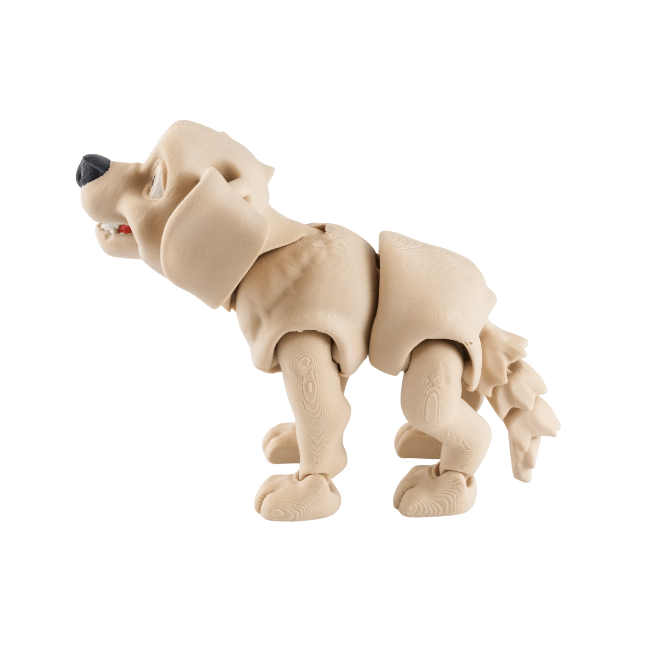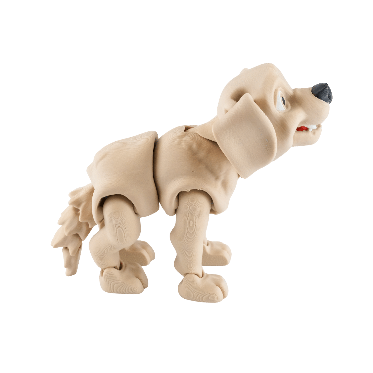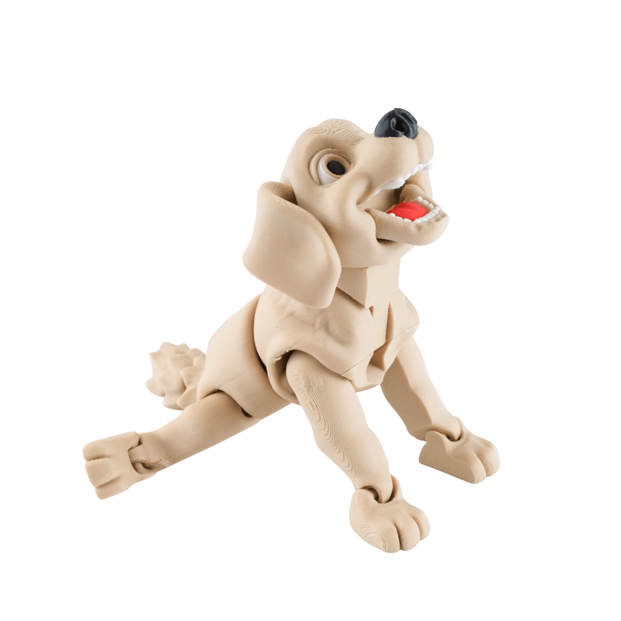 Blablador to figurka labradora z druku 3D, która wygląda, jakby właśnie zaczęła opowiadać Ci o swoim dniu — i nie zamierzała szybko skończyć. Ruchoma mordka otwiera się i zamyka, a ogon merdzi z entuzjazmem godnym prawdziwego labradora przy misce z karmą. Postaw go na biurku, a natychmiast poczujesz, że ktoś słucha — albo mówi, albo jedno i drugie naraz.