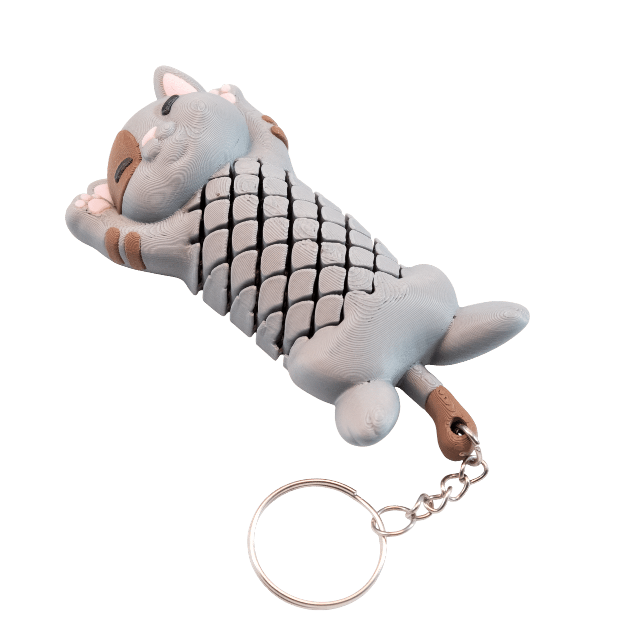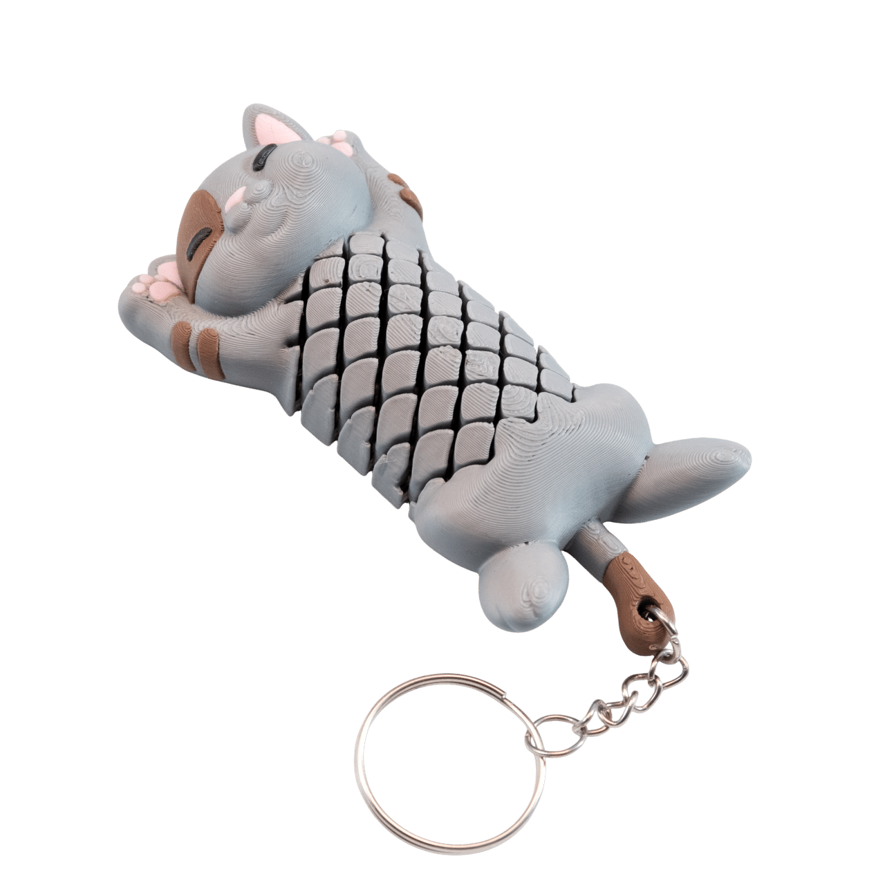 Brelok kot z druku 3D „Kotek Pat” na klucze – szary, segmentowy gadżet