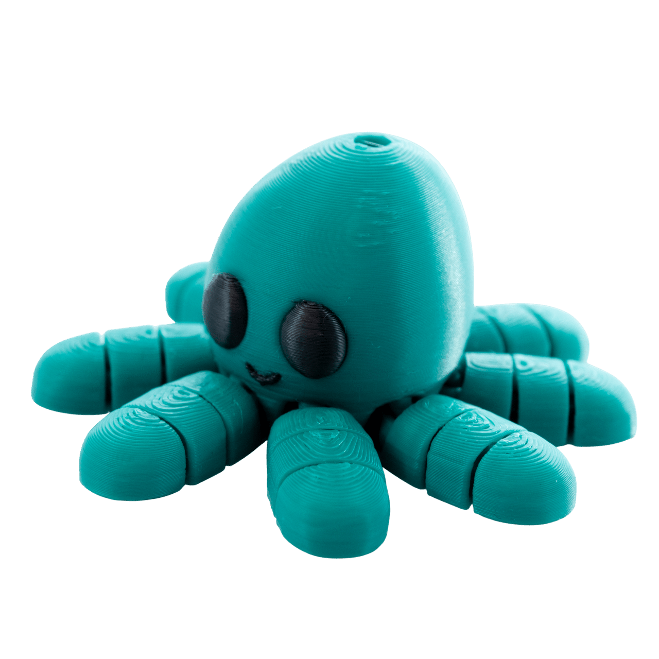 Brelok ośmiorniczka z druku 3D, turkusowa figurka flexi z oczkami, gadżet dekoracyjny i zawieszka.