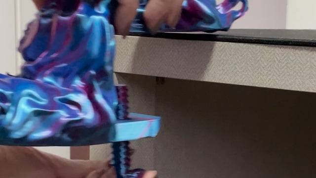• Dla osoby pracującej w open space lub w domu, która chce zachować płaski blat bez dodatkowych stojaków zajmujących powierzchnię — Wisior wisi pod blatem, nad blatem widać tylko 5 cm rzeźby