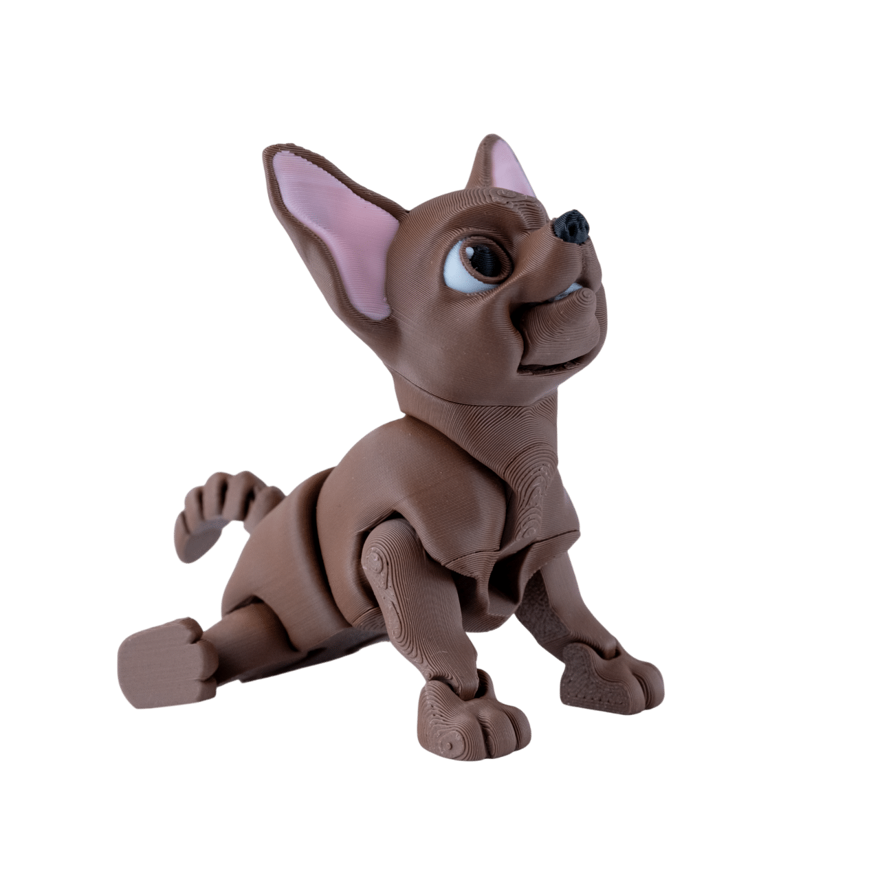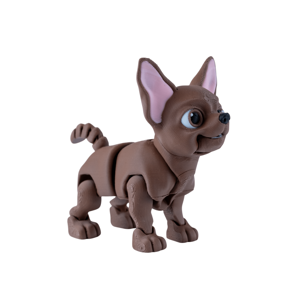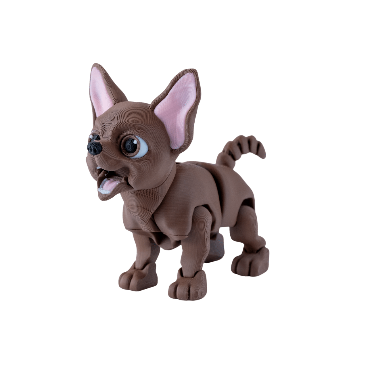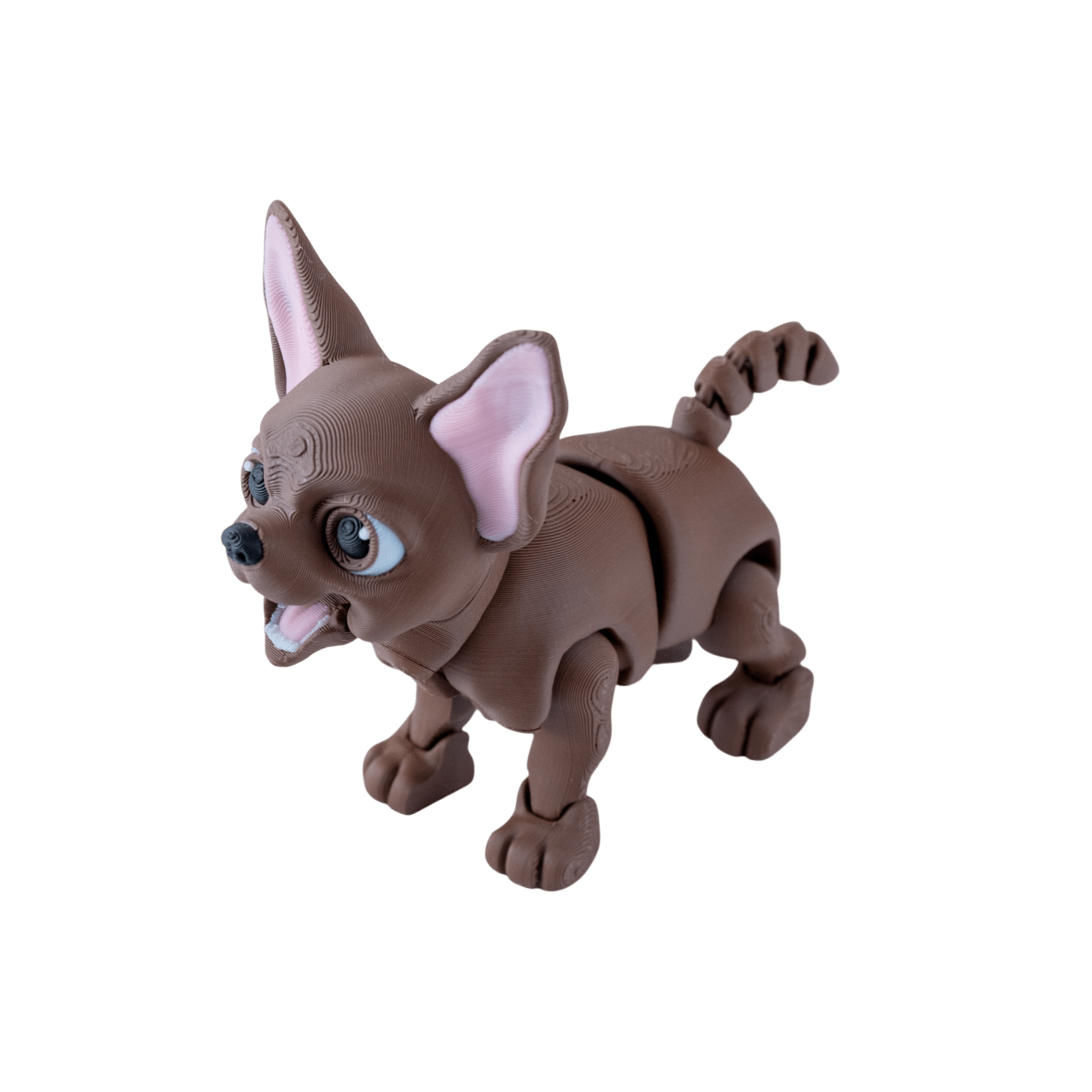 CziWow piesek chihuahua z druku 3D brązowy, różowe uszy, ruchome kończyny, otwarty pysk