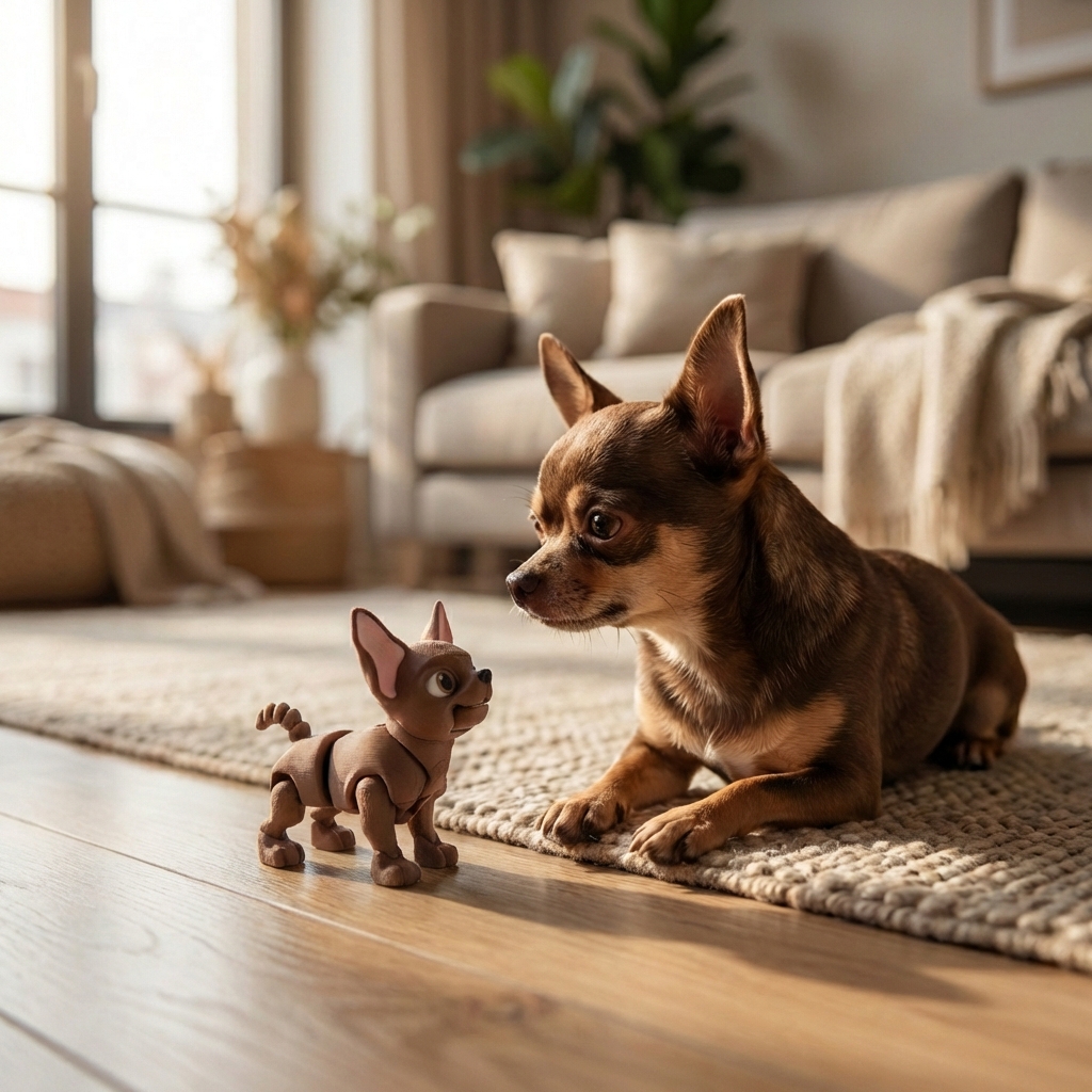 CziWow to nie jest zwykła figurka. To piesek chihuahua z druku 3D, który patrzy na Ciebie tymi wielkimi oczami i od razu wiesz, że coś kombinuje.