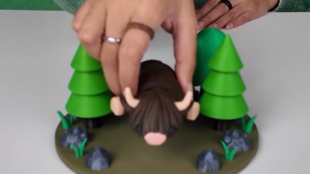 Jego futrzasta faktura jest odwzorowana warstwa po warstwie w technologii 3D, dlatego z bliska widać delikatne linie druku – naturalny efekt, który dodaje mu uroku i autentyczności.