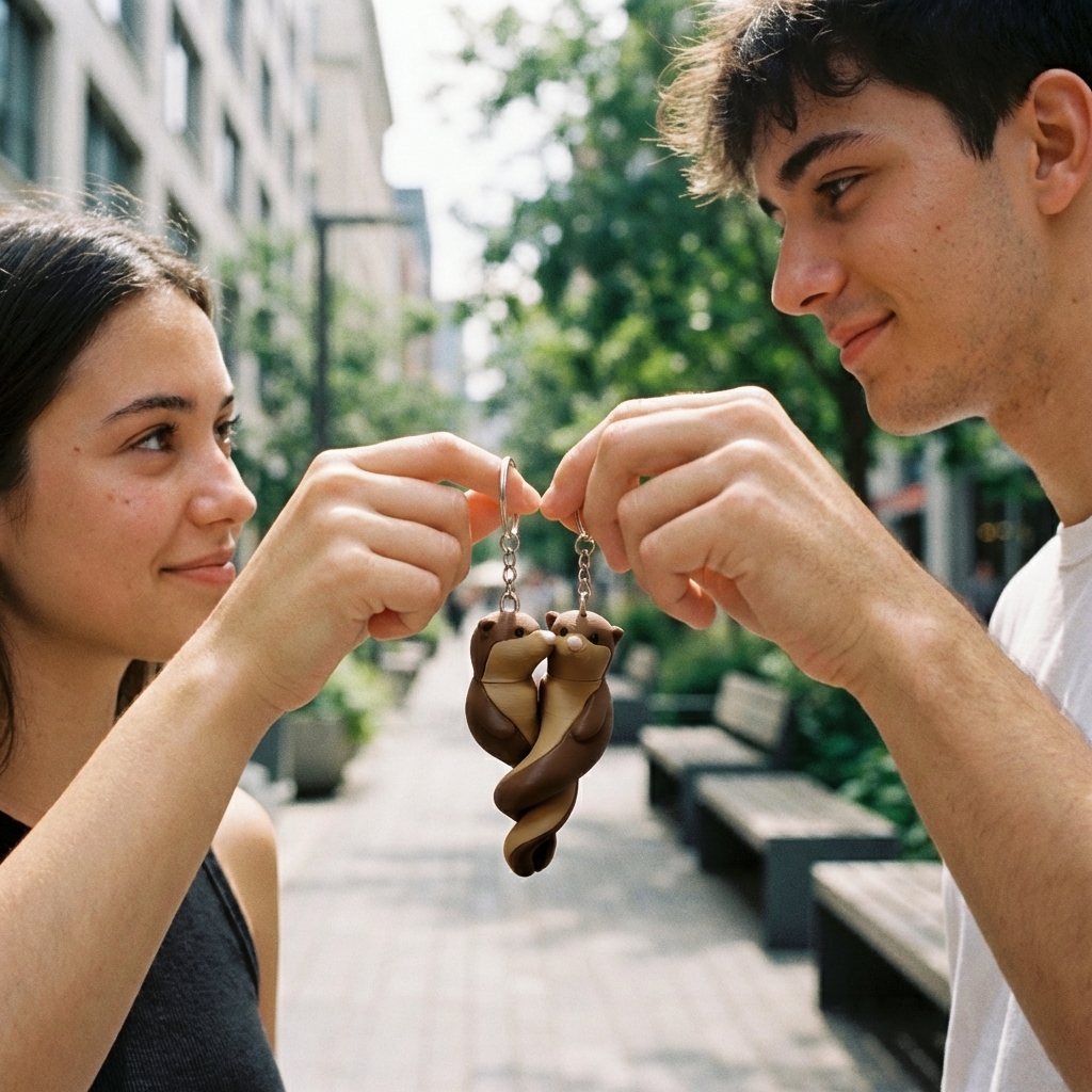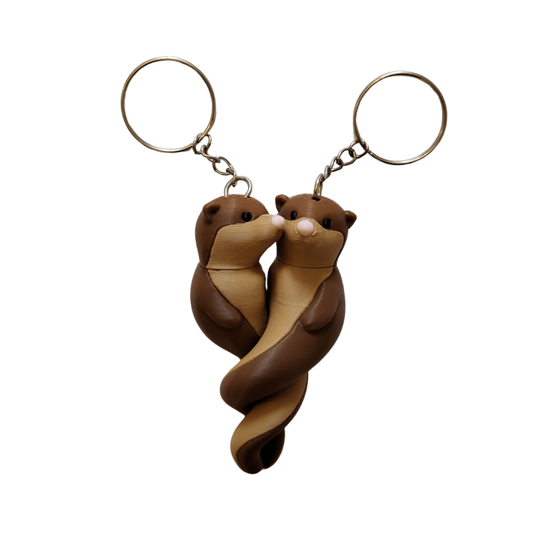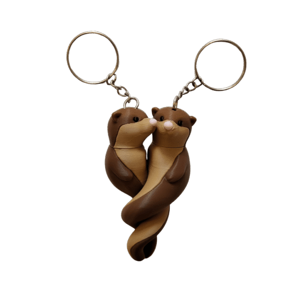 Miłosny splot wydr – para breloków z druku 3D to mały manifest bliskości inspirowany naturą. Wydry morskie podczas snu trzymają się za łapki, by nurt ich nie rozdzielił – te robią dokładnie to samo, tylko w świecie kluczy, plecaków i codziennego pędu.