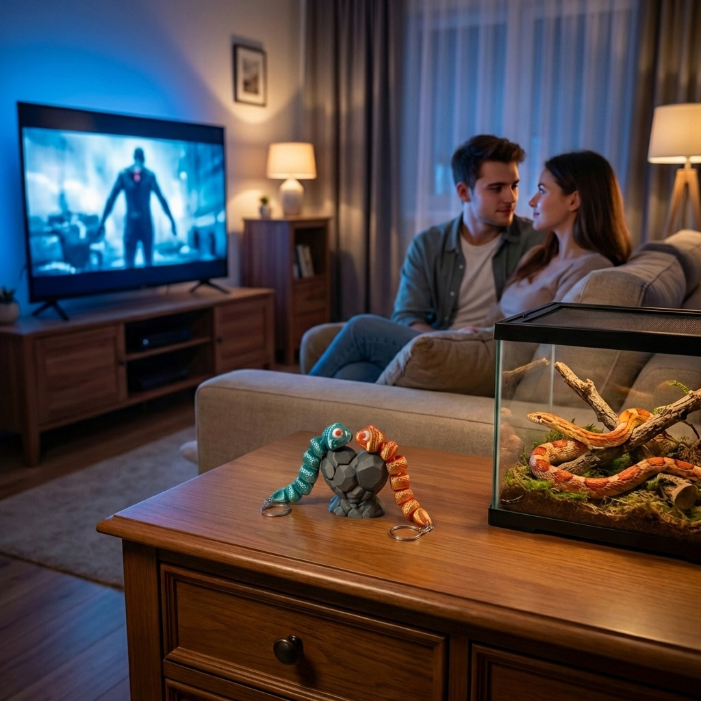 Wężowe LOVE – zestaw breloków na sercu z druku 3D to dowód na to, że nawet gady mogą być symbolem przywiązania (i to dosłownie).
